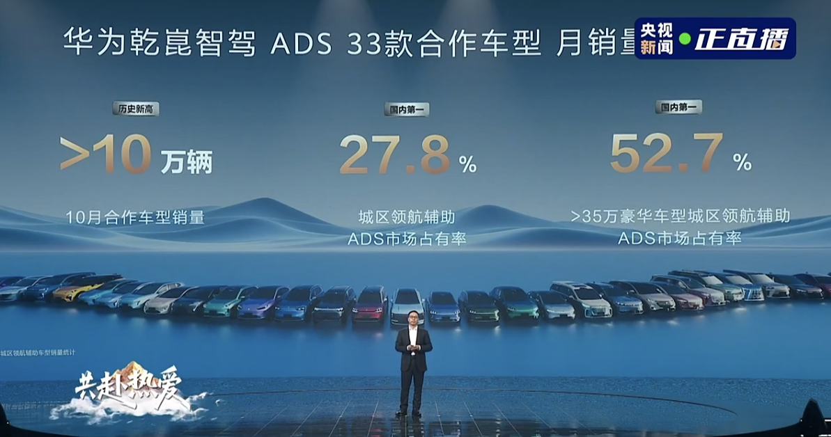 上证报中国证券网讯(记者 俞立严 时娜 操子怡)11月20日,在华为乾崑生态大会上,华为智能汽车料理决策BU CEO靳玉志文书,华为乾崑智驾ADS的33款和洽车型月销量破10万辆,创历史新高。城市领航补助商场占有率27.8%,越过第二、三名之和;35万以上豪华车型城区领航补助商场占有率52.7%。